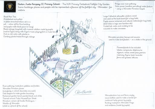 The theme of our garden is Worcester and we have been busy collecting ideas from everyone at school. There were so many fantastic ideas. We have taken the best ideas and the ones that work together well to create a design for the show garden. Mr Mcall (Little Acre Gardens) has been helping us figure out what the construction will look like and how it can be made.